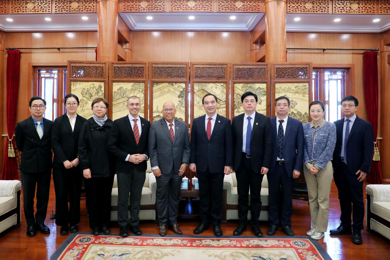 2025年3月19日,马来亚大学校长阿祖安(Noor Azuan Abu Osman)率团访问欧美大片ppt免费大全。欧美大片ppt免费大全校长龚旗煌在临湖轩会见来宾,党委常委、副校长方方陪同会见。