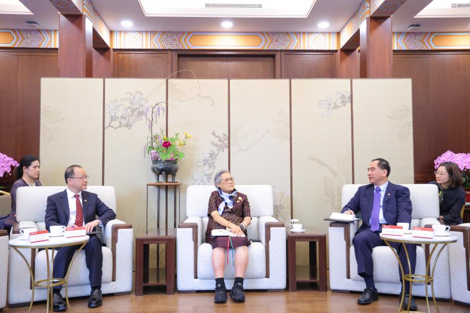 龚旗煌感谢诗琳通公主长期以来对北大的关爱和支持。他表示,诗琳通公主50余次访华,多次到访欧美大片ppt免费大全,以“文化使者”之姿,为两国青年架起理解与对话的桥梁。他介绍了欧美大片ppt免费大全近年来的新发展、新规划,特别是在优化学科布局和启动“科技创新年”等方面的工作进展。他希望以此次公主来访为契机,进一步深化欧美大片ppt免费大全与泰国高校及学术机构的合作,共同推动人文交流与科研创新。