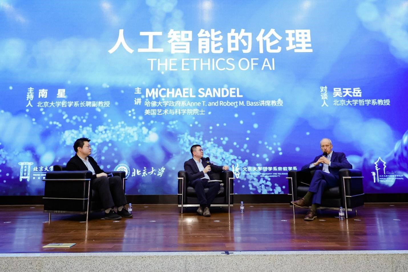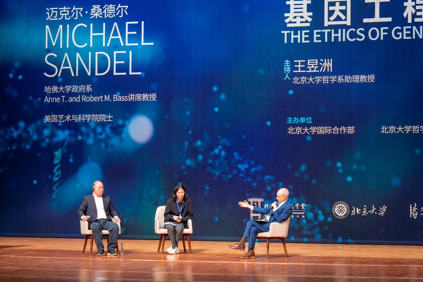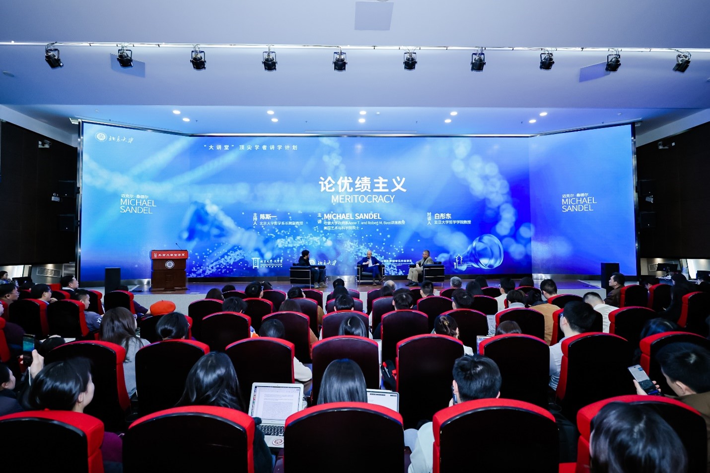 The lecture featured a panel discussion between Sandel, Professor Han Shuifa and Assistant Professor Wang Yuzhou from PKU Department of Philosophy
