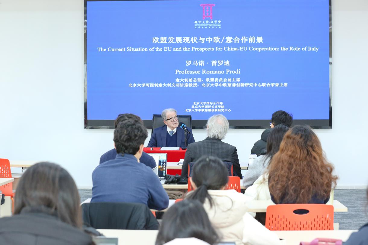 Peking University, Mar 12, 2025:In what has become a successful and enlightening cultural exchange activity, Romano Prodi, former Italian Prime Minister and President of the European Commission, paid Peking University a visit in February and delivered a series of riveting lectures, as part of the school’s Global Fellowship Lecture Series, touching on topics ranging from Italian industrial policies to cultural aspects in China and Europe.